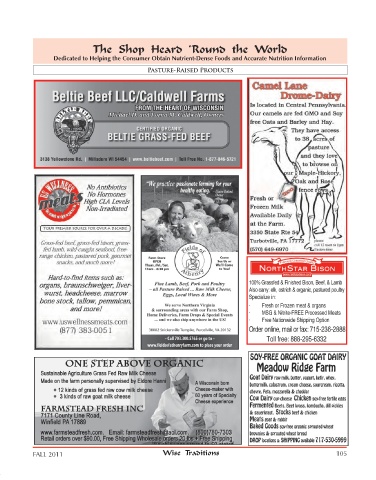 The Shop Heard ‘Round the World Dedicated to Helping the Consumer Obtain Nutrient-Dense Foods and Accurate Nutrition Information Pasture-Raised Products Wise Traditions FALL 2011 FALL 2011 Wise Traditions 105 82725_WAPF_Txt.indd 105 9/15/11 2:02 PM