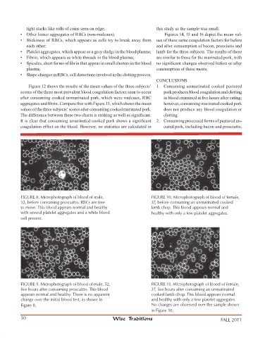 after consuming cooked unmarinated pork, which were rouleaux, RBC in blood examined at five hours after eating;