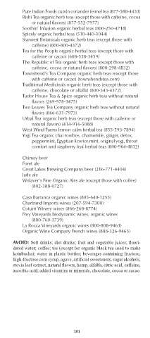 caffeine, chocolate or alfalfa) (800-543-4372)