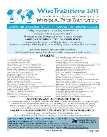 For more information, call (304) 724-3006 or visit http://conferences.westonaprice.org/main-conference/