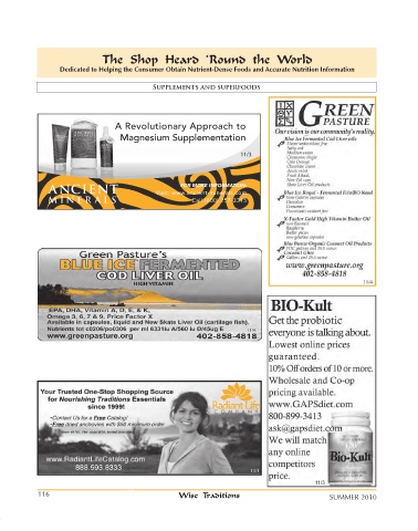 The Shop Heard ‘Round the World dedicated to Helping the consumer obtain nutrient-dense Foods and accurate nutrition information Supplements and superfoods 11/3 11/4 11/1 11/4 12/1 11/3 11/1 116 Wise Traditions SUMMER 2010