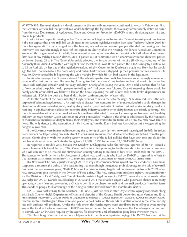 WISCONSIN: The most significant developments in the raw milk movement continued to occur in Wisconsin. First,