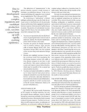 epidemics. • Vaccines are grown on foreign materials and exorbitant production costs, vaccines cannot