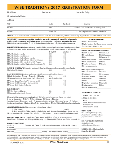 WISE TRADITIONS 2017 REGISTRATION FORM