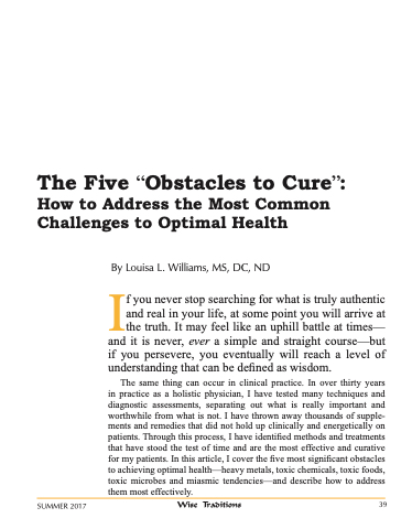 The Five “Obstacles to Cure”: How to Address the Most Common Challenges to Optimal Health