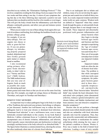 Impacted wisdom teeth are often the site of chronic focal infec- tions. The problem is that while unerupted teeth may rarely cause symptoms, the patho- genic bacteria gener- ated in these sites— typically streptococ- cal—can travel to dis-
